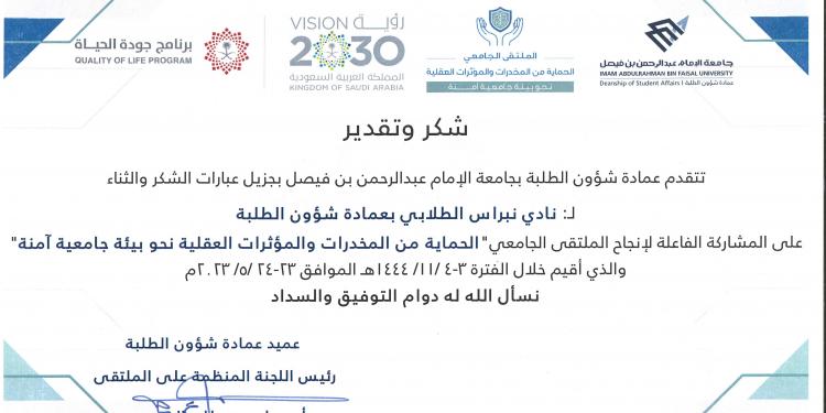 Pioneering in the field of drug and psychotropic drug harm prevention for students of Imam Abdul Rahman Bin Faisal University to reach a safe university environment.