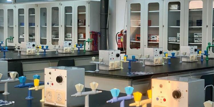 Electrical connecting bord- direct power supply- resistance – Amitre- Field coil, d = 120 mm - Induction coils, set of 3 - VOLTAMETAR - alternative current supply- COIL- Potentiometer- Electrical source oscillator- Capacitor- Oscilloscope – Diode- Avometer -electric plug -WIRE- Transistor- Impedance - Capacitors